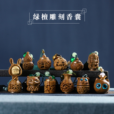 绿檀木镂空雕刻貔貅莲花葫芦挂件檀香吊坠香囊木雕手机钥匙扣挂坠