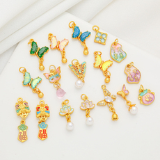 哑金沙金包金保色兰花锁闪片蝴蝶珍珠莲花娜娜通吊坠diy饰品配件