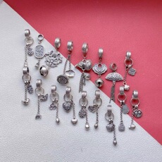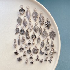 三七老银饰配件羽毛铃兰花莲花小花桃花梅花蝴蝶枫叶吊坠diy手链