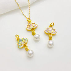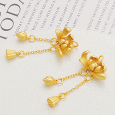 古法金哑金保色珍珠莲花吊坠耳线耳环挂链diy手工项链耳饰品配件