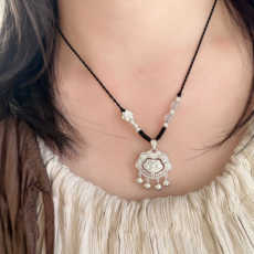 925银莲花复古碧玉翡翠吊坠民族风小众设计百搭新中式国风毛衣链