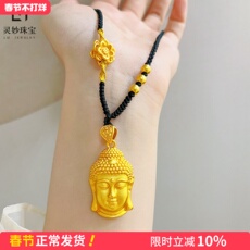 金店同款沙金999实心永保平安佛头吊坠女大日如来莲花编绳复古