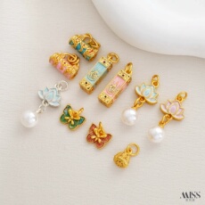 古法沙金流苏镶钻珍珠莲花吊坠diy转运珠葫芦手项链 服饰品挂配件