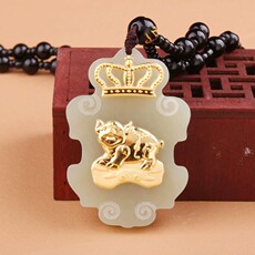 正品金镶和田玉十二生肖吊坠男女款六合莲花皇冠卍字易圣平安项链