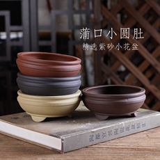 宜兴精品紫砂花盆多肉特价小型花盆圆形手工盆景盆菖蒲花盆一套
