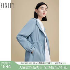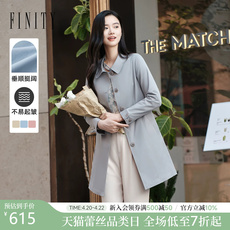 FINITY菲妮迪中长款风衣2026春新款简约通勤灰蓝色流行外套女