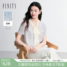 FINITY菲妮迪针织衫26夏季新款简约翻领休闲条纹亚麻短袖上衣女装