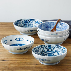 日本进口美浓烧陶瓷餐具蓝赤花吃饭碗日式寿司菜盘子碟钵拉面汤碗