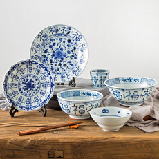 蓝凛堂家用钵碗饭碗日本进口陶瓷餐具日式复古青花圆盘拉面碗汤碗