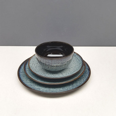 陆家陶瓷酒店餐具牛仔蓝麻布纹简约米饭面碗碟鱼菜盘汤碗无铅无镉