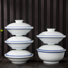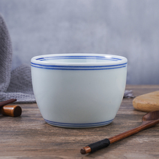 双线蓝边鸡盅碗陶瓷仿古碗日用餐具炖盅汤碗景德镇可加字酒店商用
