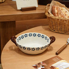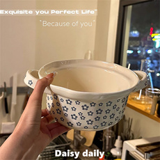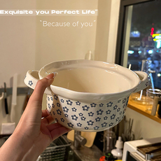 蓝朵朵双耳汤碗 日式釉下彩陶瓷餐具耐高温沙拉碗早餐碗盘套装