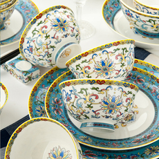硕加迦蓝系列陶瓷碗英式复古碗碟套装家用餐具盘子釉中彩汤碗饭盘
