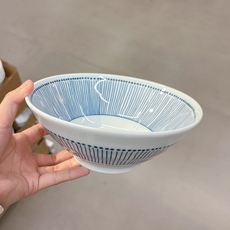 悠瓷 日式面碗家用陶瓷餐具7.5英寸手绘拉面碗蓝色条纹炒菜碗汤碗