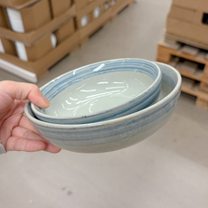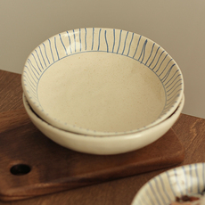 胡桃集市复古蓝色条纹酸奶碗釉下彩汤碗麦片碗早餐碗沙拉碗甜品碗