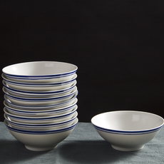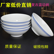 景德镇老式怀旧蓝边碗六寸饭碗粥碗汤碗 家用店用餐馆特价包邮