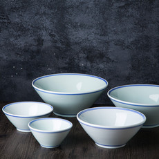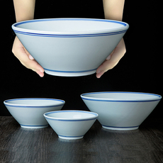 景德镇复古老式蓝边碗稀饭碗面碗小汤碗家用饭碗斗笠碗扣肉碗商用