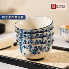 景德镇陶瓷餐具釉下彩老式蓝边碗家用创意豆浆碗面碗饭碗汤碗商用