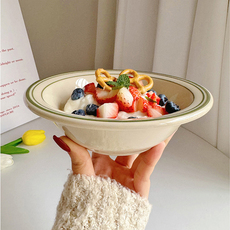 【博主款绿线圈草帽碗】ins陶瓷餐厅甜品碗意面碗例汤碗菜碗瑕疵