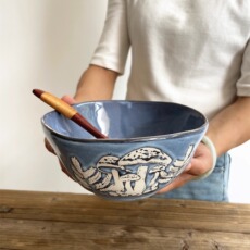日式蓝朵朵陶瓷双耳碗面碗高颜值沙拉碗家用大容量汤碗新年大菜碗