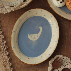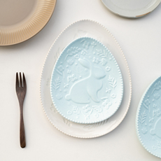 半村 蓝色兔子浮雕陶瓷餐盘椭圆形家用盘子 鸡蛋托 盐胡罐 甜品盘