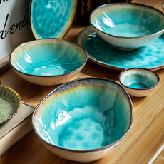 巷子尾〖超美~冰裂釉海蓝〗复古异形陶瓷沙拉碗盘子吃饭餐具餐厅