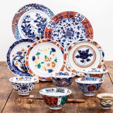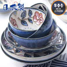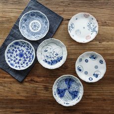 日本进口美浓烧陶瓷餐具蓝赤花饭碗日式茶杯寿司菜盘子碟拉面汤碗