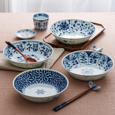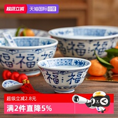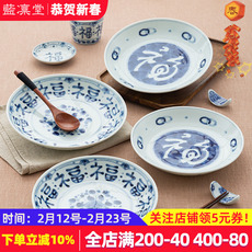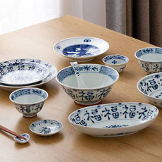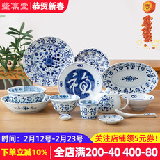 蓝凛堂福字餐具日本进口碗陶瓷盘子套装 家用日式钵面碗福盘福碗