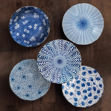 MinoYaki美浓烧釉下彩陶瓷餐盘5个进口蓝色餐碟轻奢高级感菜盘子