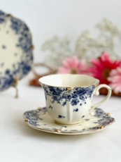 绝美 出口单欧洲宫廷气质奶油黄底色配蓝花陶瓷盘子咖啡杯 220ml