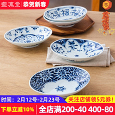 蓝凛堂日本进口陶瓷盘子家用椭圆餐盘日式青花釉下彩汤盘菜盘餐具