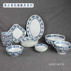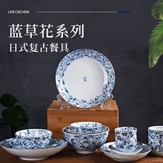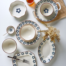日式釉下彩小蓝花陶瓷餐具复古汤碗双耳烤盘结婚礼品饭碗盘子鱼盘