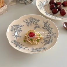 盘子法式中古蔚蓝梦境蓝花卉陶瓷甜品盘蛋糕盘复古下午茶盘西餐盘