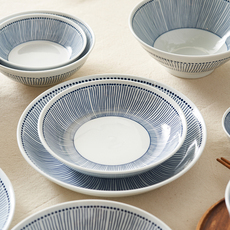 Luzerne陆升亚光蓝麻布纹轻奢日式简约陶瓷餐具碗碟盘子鱼盘汤碗