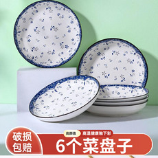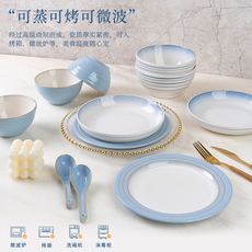 onlycook小清新蓝花陶瓷碗盘套装复古碗碟小碗浅盘子汤碗饭碗餐具