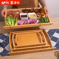 托盘竹木质长方形餐盘菜盘酒店烧烤油纸垫纸家用商用大小双耳盘子
