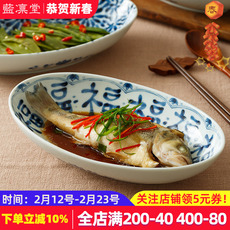 蓝凛堂椭圆盘子日本进口陶瓷鱼盘日式青花餐盘深盘菜盘家用蒸鱼盘