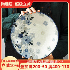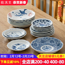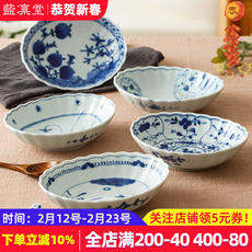 日本进口樱花釉下盘子餐盘平盘蓝色陶瓷家用日式餐具汤碗组合套装