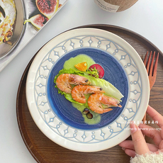 【巨美复古艺术浮雕盘子】ins陶瓷西餐盘牛排意面盘沙拉菜盘瑕疵
