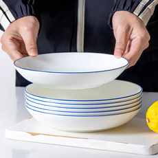 蓝凛堂青花瓷盘子菜盘家用可微波炉盘子过年深盘新款陶瓷汤盘圆盘