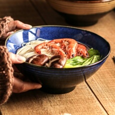 8寸汤面碗蓝色菜碗吃面条专用大碗深碗大容量盘子菜盘家用斗笠碗
