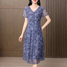 大象和长颈鹿 蓝色面纱 清新雅 夏日浪漫棉质刺绣连衣裙507103