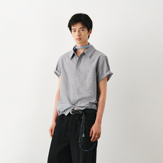 DIMC皱感肌理短袖衬衫 下摆抽绳束腰浅蓝色男女宽松衬衣