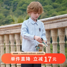 儿童装长袖蓝色衬衫男童斜纹条衬衣校服园服学院装女童寸衫中大童