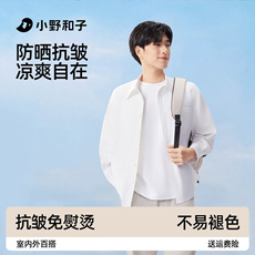 小野和子男士防晒衬衫蓝色防紫外线冰丝长袖白色薄外套2025新款夏