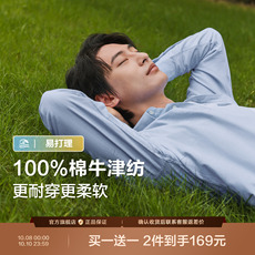 100%纯棉红豆牛津纺衬衫男长袖新款条纹休闲蓝色衬衣男士送老公