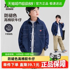 左西童装男童软牛仔衬衫春秋永久蓝防褪色2025新款洋气男孩薄外套