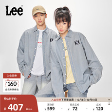 Lee25新品宽松版翻领复古浅蓝色男女同款复古长袖牛仔衬衫休闲潮