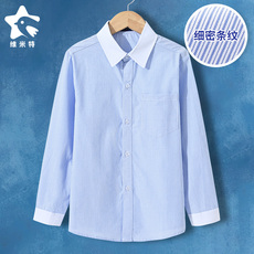 儿童装长袖蓝色衬衫男童细条竖条纹衬衣校服园服学院装寸衫中大童