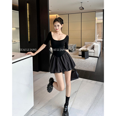 怪力酱法式芭蕾风掐腰连衣裙夏季设计感修身短款背心蓬蓬花苞裙子